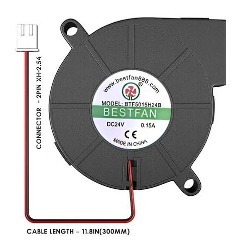 พัดลมโบลเวอร์2PIN ขนาด50มม. X 15มม. ประสิทธิภาพสูงสำหรับเครื่องพิมพ์3D 24โวลต์แบร์ไฮดรอลิกเทอร์โบทำความเย็นแบบไร้แปรงถ่าน